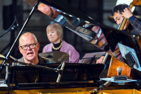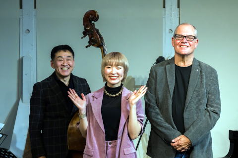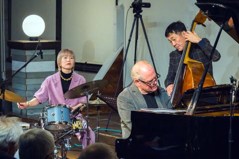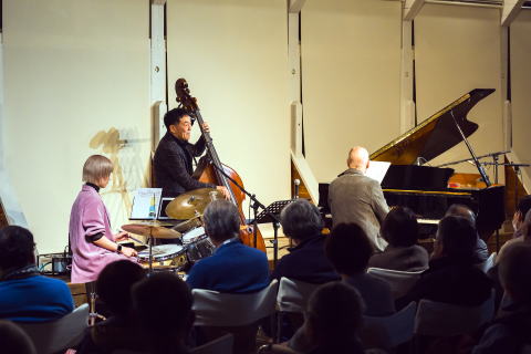 クリストフ・サンガーと入間ジャズクラブの縁は深く、2004年に金子公民館でコンサートを開催したのをはじめ、今回で6回目のコンサートとなりました。その間2023年開催のコンサートではライブ・レコーディングされ、「クリストフ・サンガー・トリオ・アット・イルマ・ジャズクラブ」というタイトルで、ドイツのライカ・レーベルからリリースされています。今回も加藤真一、利光玲奈というレギュラー・トリオで、縦横無尽なピアノプレイを披露しました。日程調整が難しく、月曜日の開催でしたが、予想以上のご来場者があり、熱気あふれるコンサートとなりました。。
