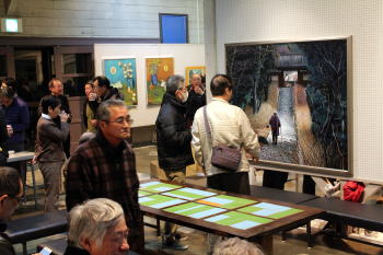 | ロビーで寛ぐお客様 | グループ円の作品を鑑賞 |