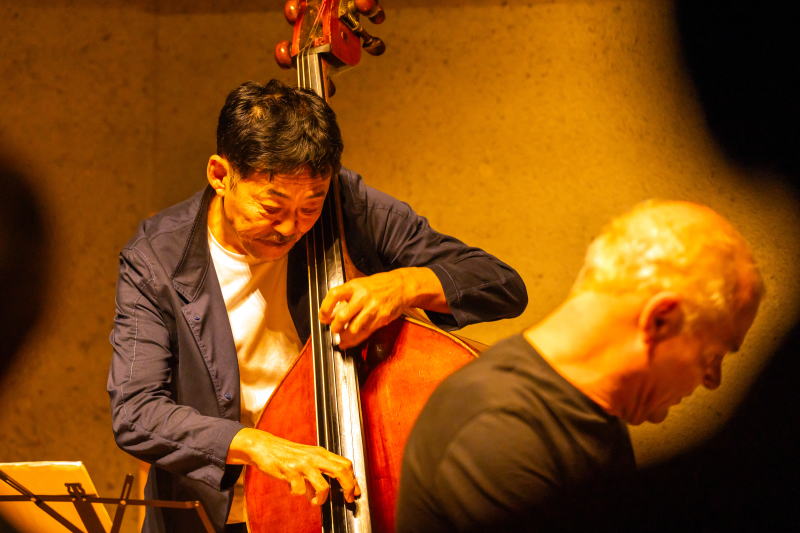 | 加藤真一(b) 北海道出身。猪俣猛トリオに抜擢され上京。1994年、マイク・スターンを迎えてのリーダーアルバムをリリース。2002年、富樫雅彦(JJ Spirits)参加。2005年佐藤允彦(saifa)にてメールス、ノースシージャズフェスティバル出演。佐藤允彦、市川秀男、嶋津健一、清水絵理子、川嶋哲郎、天野丘、小林洋子らと活動中。最新作は馬場孝喜とのデュオ『ETUDE』。美しい音色と安定感。ジャンルを超えた多様な演奏スタイルは、ジャズ界に欠くことのできない存在。 |