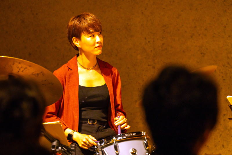 | 利光玲奈(ds) 1996年、埼玉県出身。ソプラノ歌手である母の影響により、幼い頃から音楽に親しんで育つ。洗足学園音楽大学ジャズコース(ジャズドラム)を首席で卒業。同時に卒業研究優秀者に選出される。現在、多くのグループに参加しながら、自身のリーダーライブも bf Jazz School講師。 |